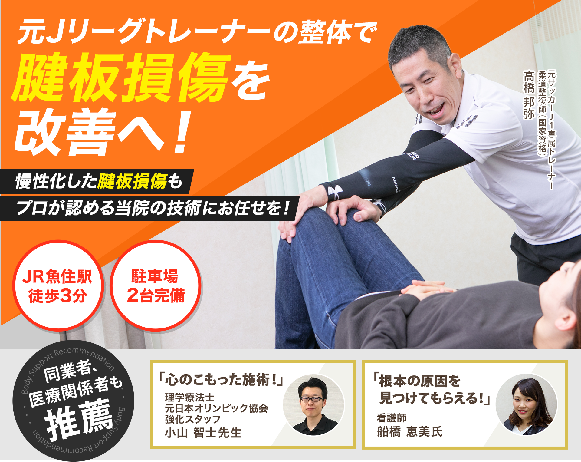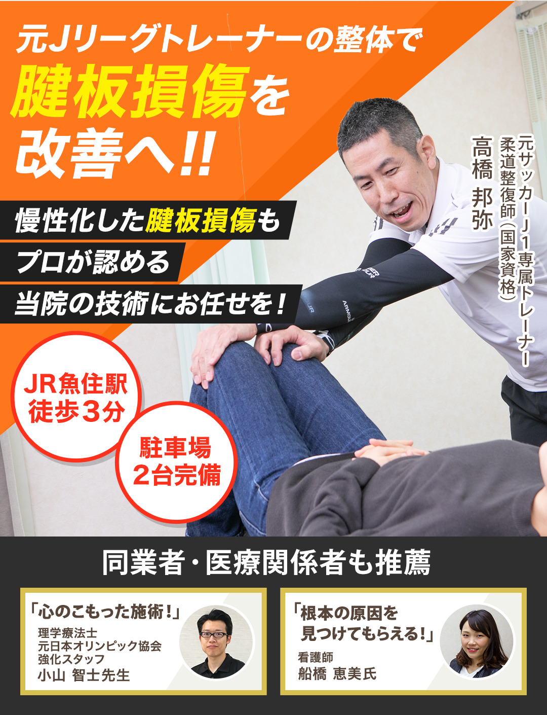またJリーグでの経験や医学の知識をもって、スポーツ障害にも精通した優秀な施術家です。 スポーツ障害や整形疾患でお悩みの方は、高橋先生に気軽に相談して頂ければきっと光明が見いだせると思います。